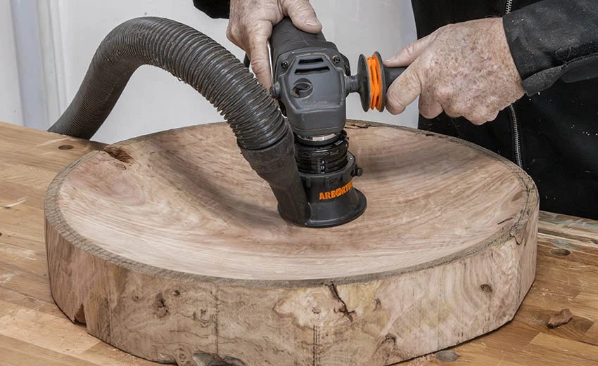 Lako transformirajte grubi komad drva u gotovo remek-djelo pomoću priloženog sustava za brušenje.