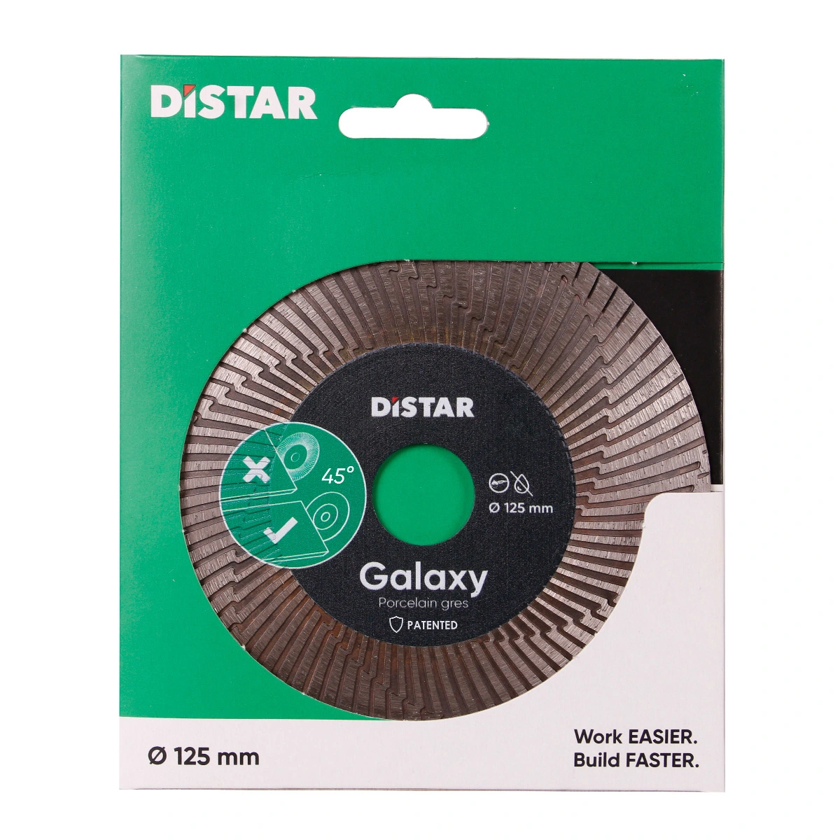 Tijekom rezanja, aktivna turbo površina učinkovito hladi zonu rezanja, dok velika dijamantna zrna osiguravaju brzo rezanje porculanskog kamena.